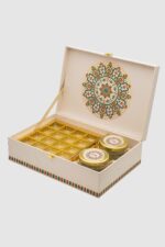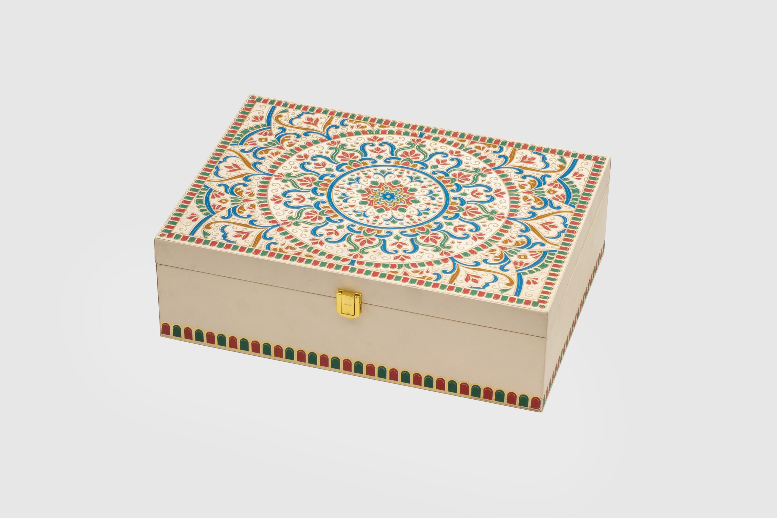 This MDF lock box features a vibrant mandala pattern inspired by traditional Indian rangoli and art motifs. Rich in color and symmetry, the design symbolizes harmony and celebration.